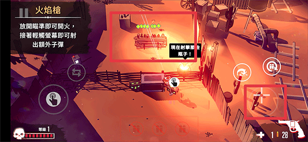 5、了解基本按键使用后,长按射击按钮瞄准并射击这些瓶子;
