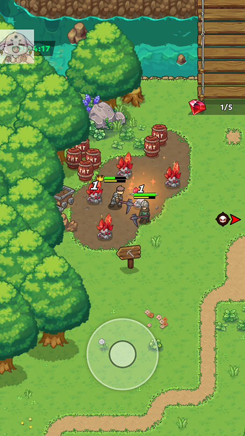 2、只需拖动角色接近敌人,攻击会自动触发。