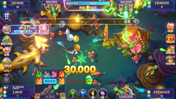 还原经典街机的捕鱼玩法,轻松直升50万炮,一炮亿金爽翻天!