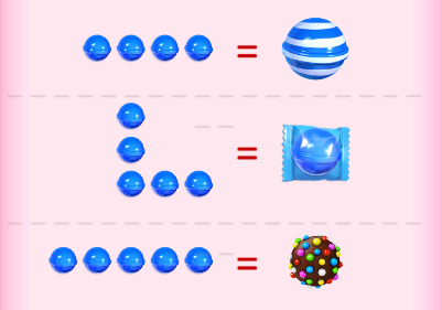 2、将 4 或 5 颗糖果以不同的形式配对,生成特殊糖果!