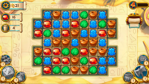埃及的珠宝是一款将三消解谜与城市建设完美融合的休闲手游。玩家将穿越时空回到古埃及,在挑战数千道精心设计的三消关卡的同时,重建被毁的聚居地,复兴王朝荣光。游戏以古埃及历史为背景,融合王室阴谋、神秘神器与冒险剧情,你将扮演年轻的建筑师,寻找失踪的妹妹、揭开家族与魔法古物的秘密,并阻止邪恶势力夺取权力。