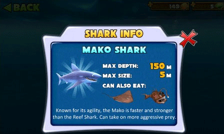 玩家朋友们不要想着吃大鱼得高分,小鱼分数低就不去捕捉。鲨鱼的饥饿程度是和跑动的距离有关的,如果不及时的进食,是很容易饿死的。所以不要挑食,大小都好。