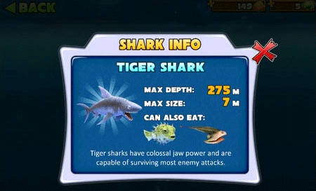 在游戏中玩家可以使用金币对鲨鱼的速度、血量、撕咬的范围进行升级,升级后可以使得鲨鱼的捕杀能力有了很大的提高。玩家在进行游戏的时候能升级就尽量的升级吧。