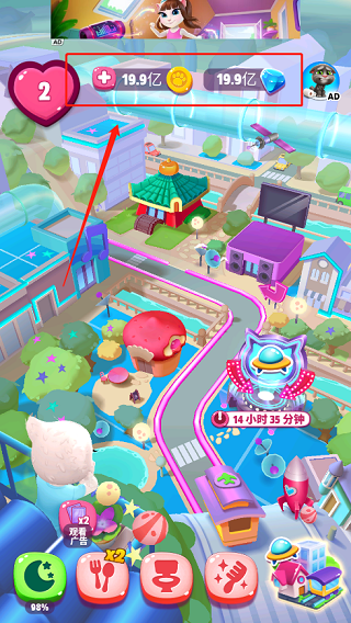 建议:飞行代币是非常重要的物资,我们需要通过照顾安吉拉的生活去获得哦。在其他娱乐场所,进行升级,也可以解锁更多的玩法。