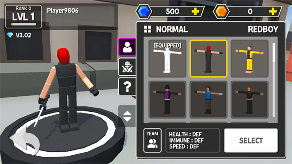 打开游戏后,首先进入【SKIN】页面。在这里你可以挑选不同风格的角色皮肤,根据喜好进行自由搭配。
