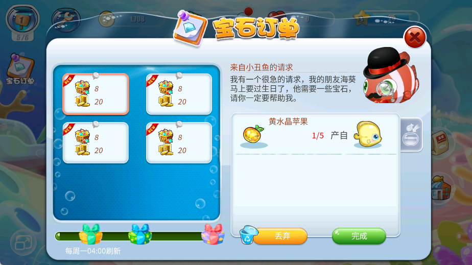 5、每条鱼在成长后会产出特定“宝物”,这些宝物可以收集,用于兑换稀有鱼种或限定道具。建议优先选择容易集齐系列的鱼种投放,避免资源浪费。