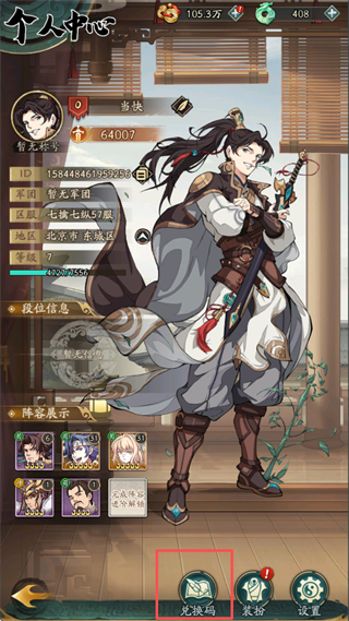 2、在个人中心找到下方的兑换码图标