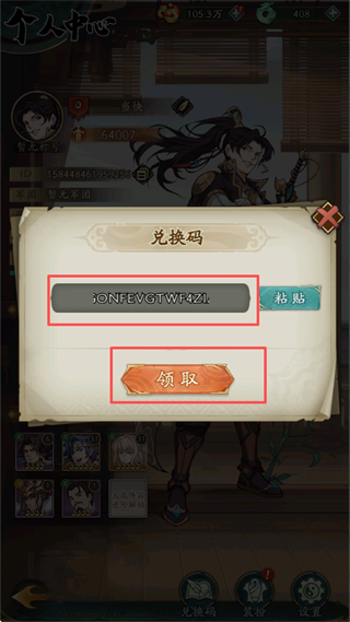 3、将礼包码粘贴进去点击领取按钮即可