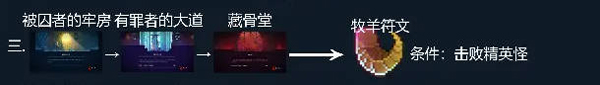 牧羊符文可打碎地上带黄色倒三角标记的松软墙体,通往隐藏房间,是进入“藏骨堂”的关键。