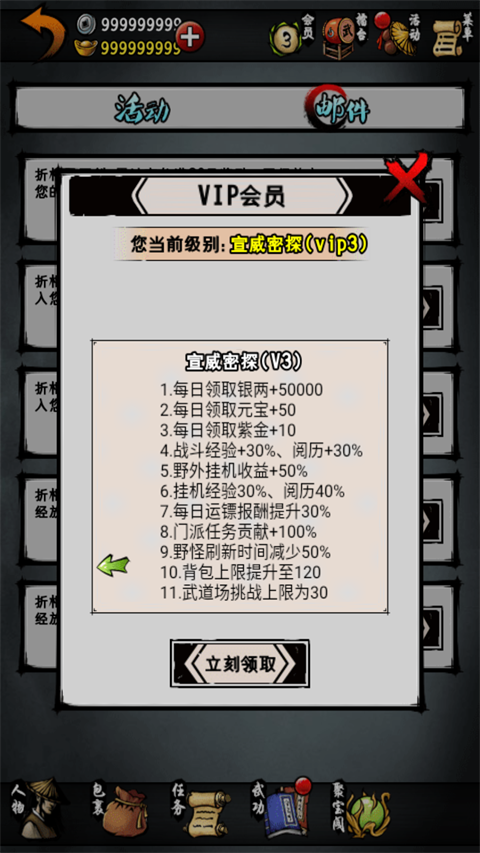 4.登录奖励领取无cd(一些秘籍最好先从门派学再领取)