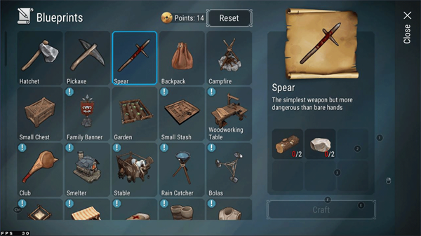 相反,你想做的是从附近收集两根棍子和两块石头。有了它们,您可以制作值得信赖的长矛,以帮助立即杀死那些在您家中徘徊的讨厌的不死生物。如果你想让你的角色留在自动状态,那么将需要更多的木头和石头来制作斧头和镐。后者可以帮助您砍伐树木并将较大的岩石打碎成您可以捡起的小岩石。