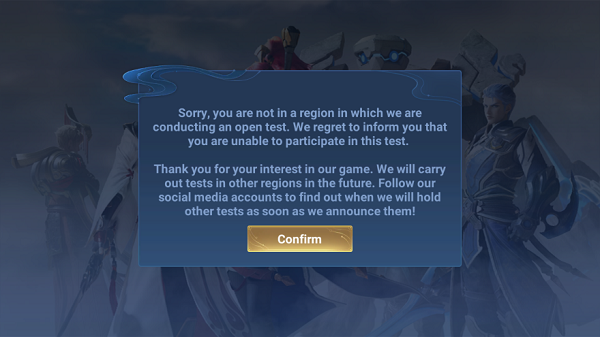 遇到下图这些提示,是因为本作是国际服游戏,是锁区的。而你第一次进入游戏没有挂加速器,被系统检测到不在测试地区,即使你后面挂了加速器也会提示这个。