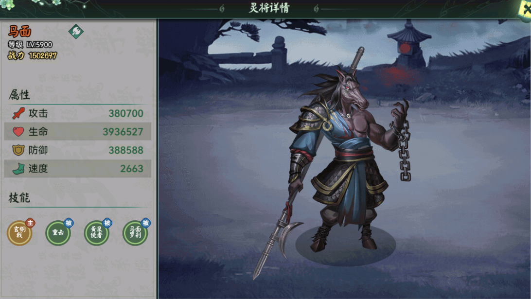 核心技能:「妖魔斩灭」对妖族灵将有额外伤害,副本可用。
