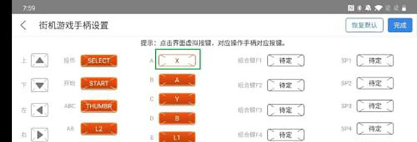 手指触屏选中“A键”,然后再操作手柄上的“A键”,把手柄A键的值代替原有的游戏值,操作成功后再次橙色覆盖。
