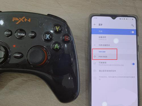 跳转到蓝牙连接设置,长按A+mode键当前指示灯快速闪烁松开手,然后手机选中第一个蓝牙标识符进行连接上手柄。连接成功后,当前显示已连接,点击左上角返回。
