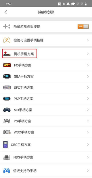 选择要设置的游戏类型,教程以街机手柄方案为例。点击进入,设置键位。