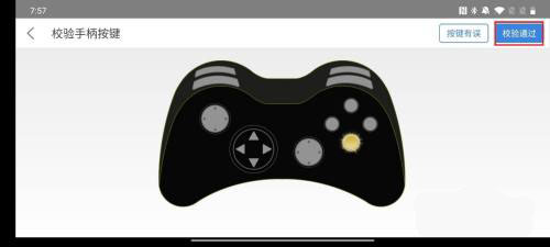 随意操作手柄上的按键,测试界面都会有反应亮灯,表示当前手柄按键功能正常。全部按键没有问题后,点击右上角的“校验通过”。