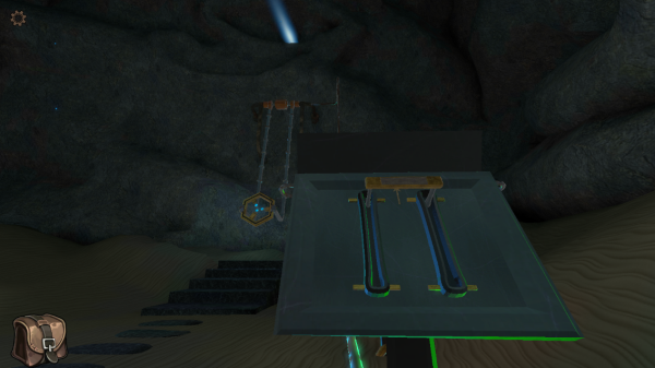 11、即可出现机关,将机关向上拉,启动挂盘,会出现光束,此时回到大圆盘