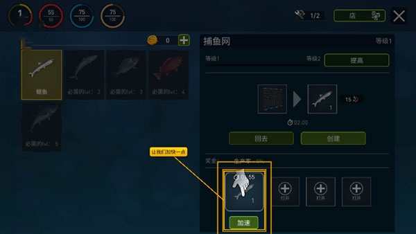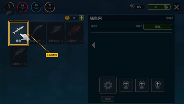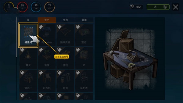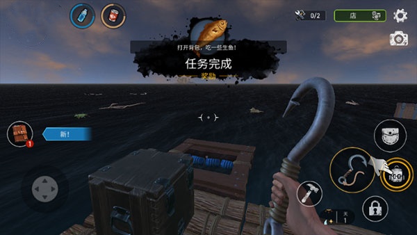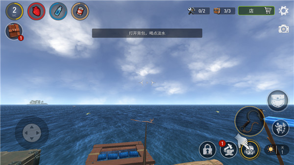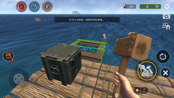 最初资源有限,需要利用钩爪获取资源,有时候还能遇到各种小岛屿,利用船锚使木筏停下来,建造一把斧头可以上去采集更多的资源,后期实力强大起来,可以通过安装捕网道具在海面上能更被动化的获取资源。
