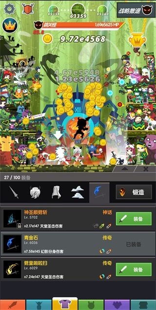 说下操作,前期劈砍装备分身加成,所有技能加到30级,释放除天堂的所有技能,等待分身推层。我的极限层是6w38,前期可以推到6w32,然后劈砍换成天堂加成,释放除致命的其他技能,开始跳劈到极限层。