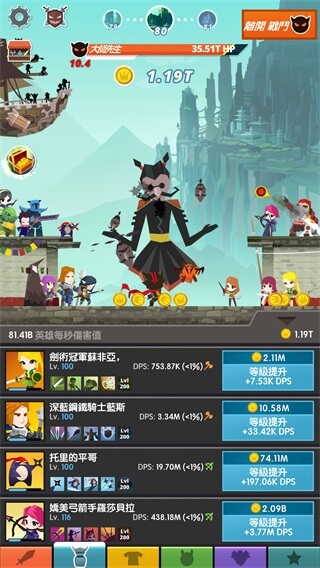游戏省去各类繁复的操作,只需快速点击屏幕,剑圣便会频频出招,解决入侵的怪物!英雄的攻击取决于你点击的速度,面对关卡BOSS,记得全力出击!