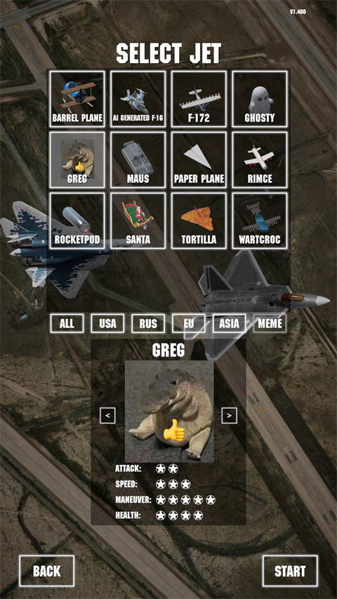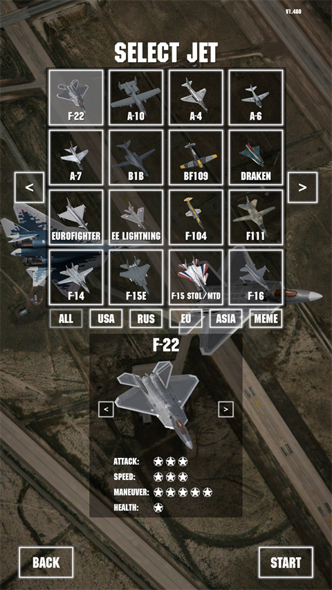 喷气式战斗机(Jet Attack Move)也译作“喷气式突进”,是一款模拟驾驶空战游戏,玩家将驾驶各式战机,在快节奏的战斗中摧毁敌人,尽享街机式空战的紧张与刺激。游戏收录超过50架经典战机,包括F-22、F-14、苏-57、F-16、米格-29、F-111、海鹰战斗机及B1-B等,每款战机均具备真实还原的性能与操控感,满足不同玩家的驾驶偏好。