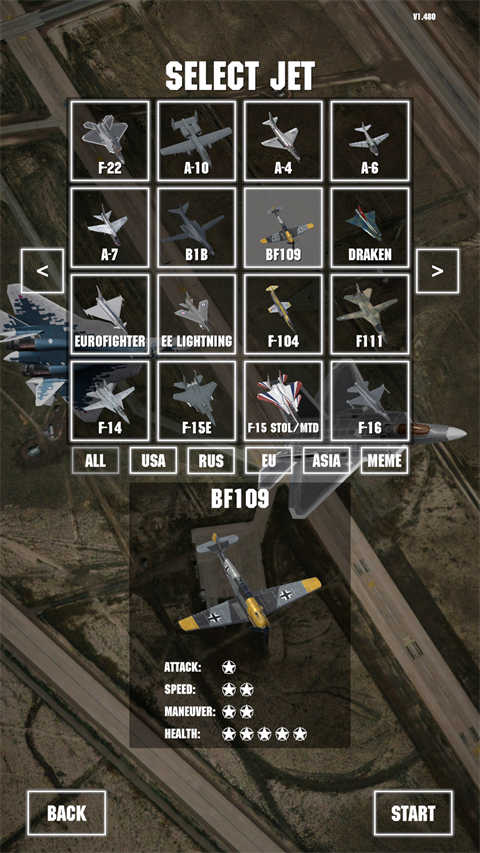 1、众多喷气式战机可以让玩家来自由驾驶,不同的玩法模式会为你提供不一样的对战乐趣。