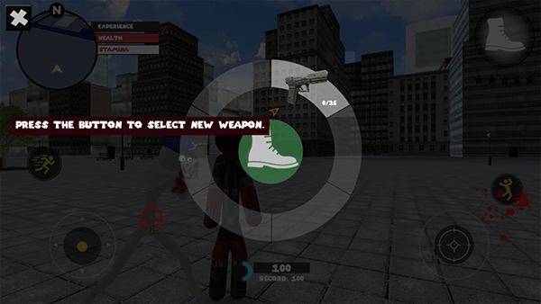 左侧移动、加速,右侧绳索,攻击(跳跃),跳跃,右上侧的武器更换以及血量、经验的显示都实时更新,一览无遗,凭借着大家自由的玩法,与其他帮派的人物进行交火,期间杀人能够获得经验,杀多了会产生星级,警察和其他附近角色会特殊照顾你对你展开火热的进攻,而如何存活,如何将其他人物击杀则是你所需要完成的任务。