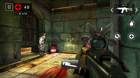左半边屏幕区域是人物的移动区域,右半边屏幕是人物的视角观察区。(比死亡扳机1代灵敏度高多了)。