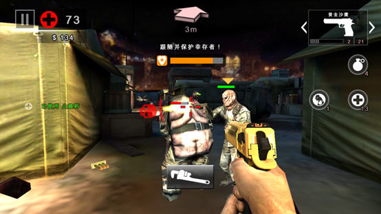 游戏屏幕上放有个箭头,箭头下方有个距离,这就是提示大家距离下一个任务交代点还有多少米。系统就再也不用担心玩家迷路了。