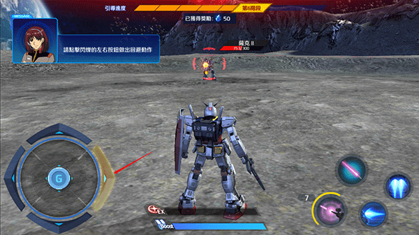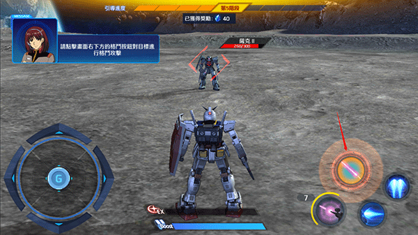 承继并且还原钢弹系列的部分动作,游戏一开始由钢弹RX-78-2带入,经过通讯员引导完成所有阶段性的初步教学,包含移动、推进冲刺、上升跳跃、反击方式、射击和格斗战斗,特别是近战格斗攻击和锁定提示等都是原始钢弹系列动作。对于10多年前玩过SD钢弹的老玩家完全不陌生,甚至是回忆满满。