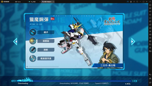 说明:于300年前的「厄祭战」中所使用的其中一架钢弹骨架,这台MS长期被当作CGS动力炉运用。CGS的少年们因为遭遇加拉尔霍恩的袭击,紧急将它启动,由三日月进入驾驶。由于「厄祭战」之后已经过了漫长的岁月,使得装甲老化,无法发挥原本的性能。武装是大型的锤矛。
