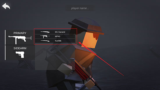 方块战场中,玩家还可以在其中挑选适合自己的武器去战斗,有M1 Garand、MP40和Kar98k,外加上一把M1915小手枪,虽说武器种类有点少,但实际操作起来的话也会让你眼前一亮,不信你可以来游戏中体验哦。