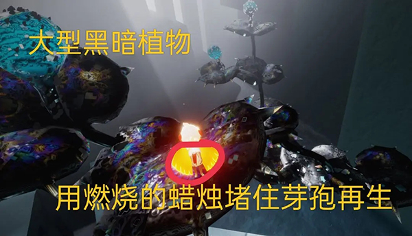 5、堵花;遇到大花(大型黑暗植物)难烧,主动站在正确的位置举火,不要乱动,堵住芽孢再生,让大佬安心去另一边烧花;