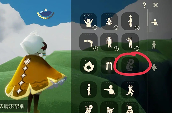 (五)作为新入坑萌新,你可以主动发起求助,如下图红圈圈出;操作路径:先点屏幕中上方的光翼,再点红圈标注的按钮;