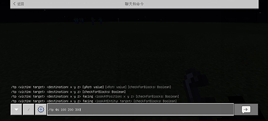 2、在对话框中,输入传送指令/tp x y z或/tp 玩家名 x y z;
