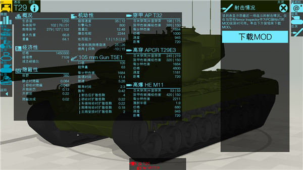 3、玩家在游戏内可以查看坦克的各项数据。