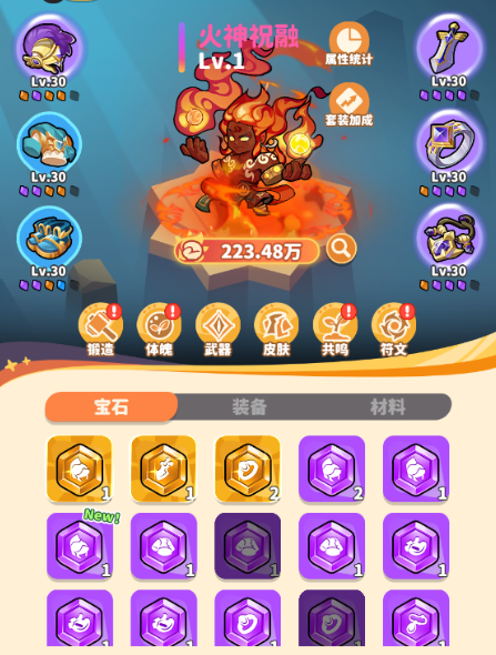 3、操作小tips:5个同等级同元素的符文可以进行合成升级,装备符文达到一定等级后可以激活套装 ,为领主提供基础属性加成。