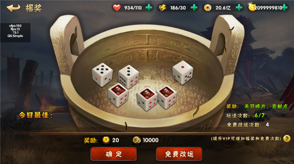 摇骰子(可获得SS神将关羽碎片哦)