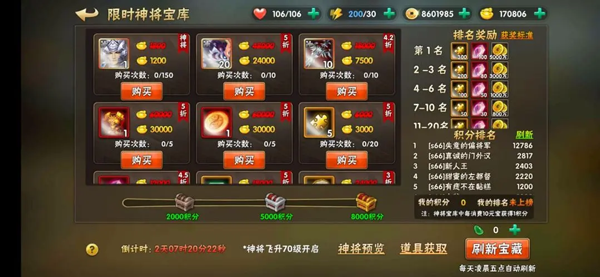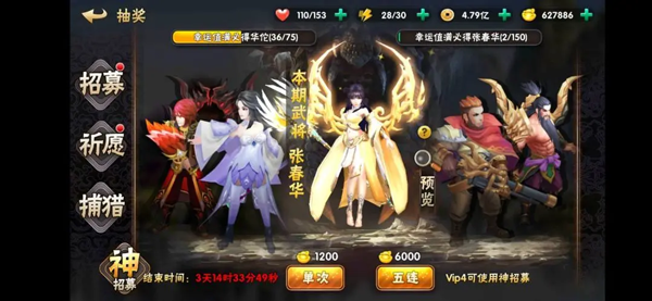 神招募:SS品质以上的武将还可以从“神招募”活动中获取呦