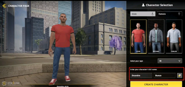 7、进游戏之后还要有个选人界面,可以选男性/女性,在这里改名字会决定你在游戏里的名字。