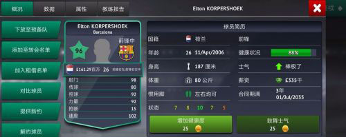 这种方式适合培养球队的主力阵容,其前提是你的主力阵容有足够的成长空间,否则不涨不要怪我。其次【划重点】预备队不要留太多球员!为什么呢? 这牵扯到训练机制问题,这个游戏在训练时会随机选择年轻球员,这就使得你的主力球员会被挤掉训练的位置【这就是我为啥说会空占位置的原因】所以预备队的人一般能租就租,租不掉就卖,反正就是不能屯一大批年轻球员!这样才能腾出位置给主力,由于赛程安排,我推荐一般保留一线队保持满编用来轮换【踢英超的应该有体会】否则累死人不偿命。这样下来主力得到了比赛和训练的双倍增长 只要有成长空间,一般都能得到很好培养。