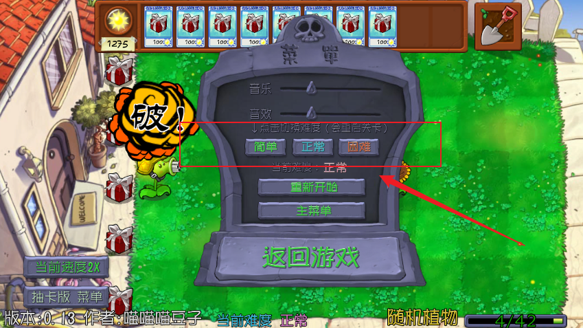 2、在模式界面中,可选择不同玩法类型,比如“随机植物挑战”或“锤子舞会”等。玩家还能根据自身水平调整难度,从入门到高阶都能找到合适的节奏。