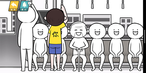 第四关只需要操控人物一直往左边移动让老人坐下就可以了。