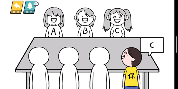第五关需要挑选一个搭档,选择其他人物都没有选择的C就可以了。