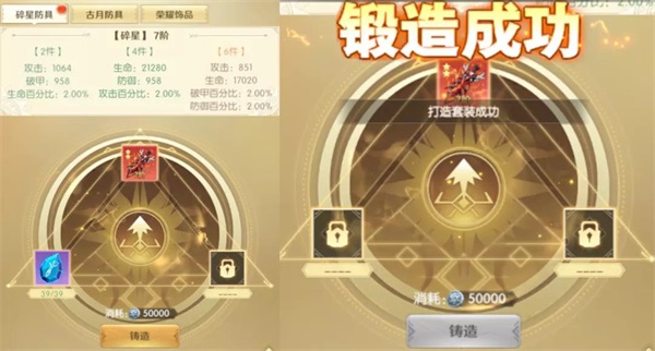 需要注意的是,在合成装备时会显示成功率,若成功率没有达到百分百则会有合成失败的概率,当装备合成失败时,则会损失掉所有装备,但下一次合成装备的成功率会增加15%。