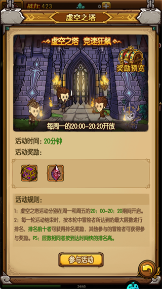 每周一、五20:00-20:20参与,冲层数拿排名奖励,层数相同按到达时间排序。
