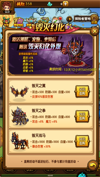 激活翅膀/宠物/坐骑可获5%全属性加成,按需选择直购,快速获得强大战力。