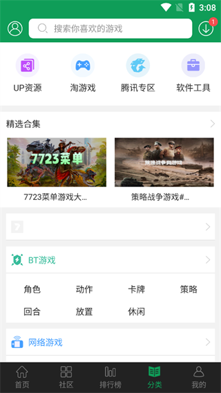 分类页将游戏按不同的类型进行详细归类,包括BT游戏、网络游戏、动作游戏、策略游戏等,玩家可以根据自己的兴趣选择不同类别的游戏进行浏览和下载。同时,这里还会展示一些精选合集,帮助用户发现更多优秀的游戏。