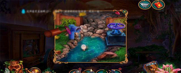 按照提示打开下面的砖,得到风车轮和破损的机械鸟左边用罐子收集萤火虫,到之前的场景把萤火虫放进画里,得到音乐劵